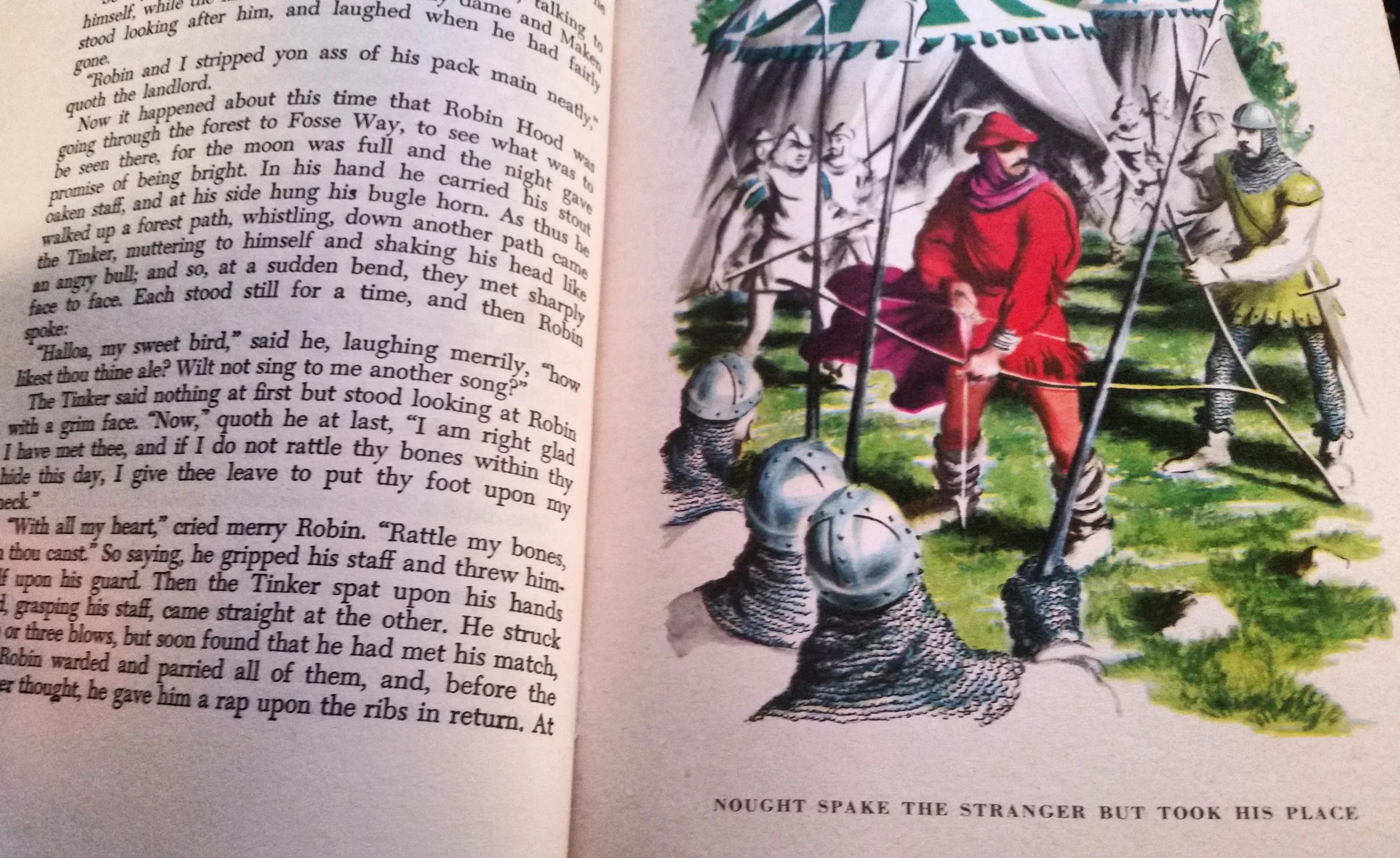 My mother used to read me a 1979 printing of Howard Pyle's "The Merry Adventures of Robin Hood," a beautifully-illustrated edition. My father, a filmmaker, bought 16mm reels of the old 1950s Robin Hood television show, and we'd screen them on a projector in the living room.