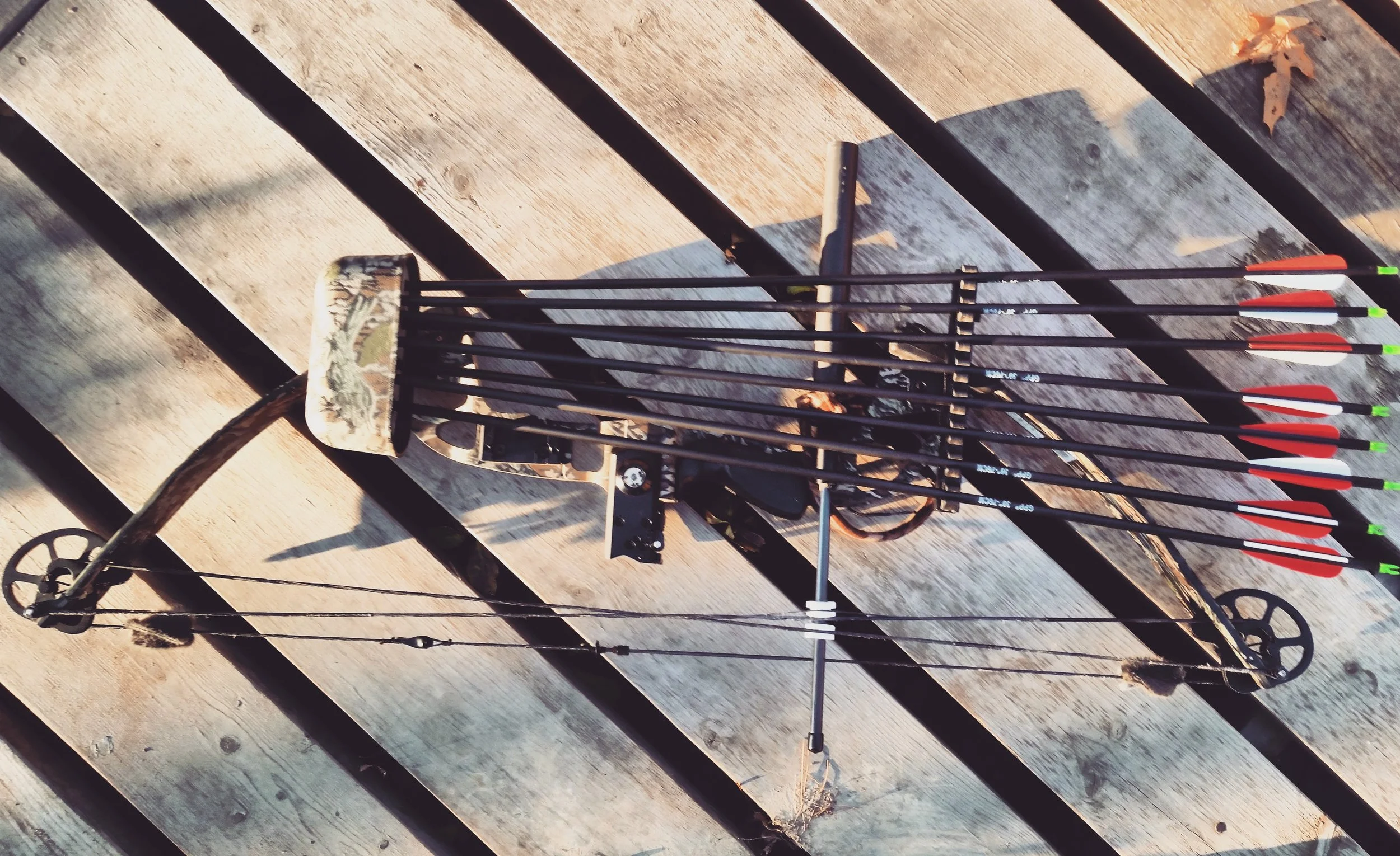 It's a crazy right-handed compound, more machine than elegance. Max draw is 70 pounds, which means I can barely use it. It's fast enough to bring down large game and it's got more gadgets on it than I know how to use. The first thing I did was remove the sights.