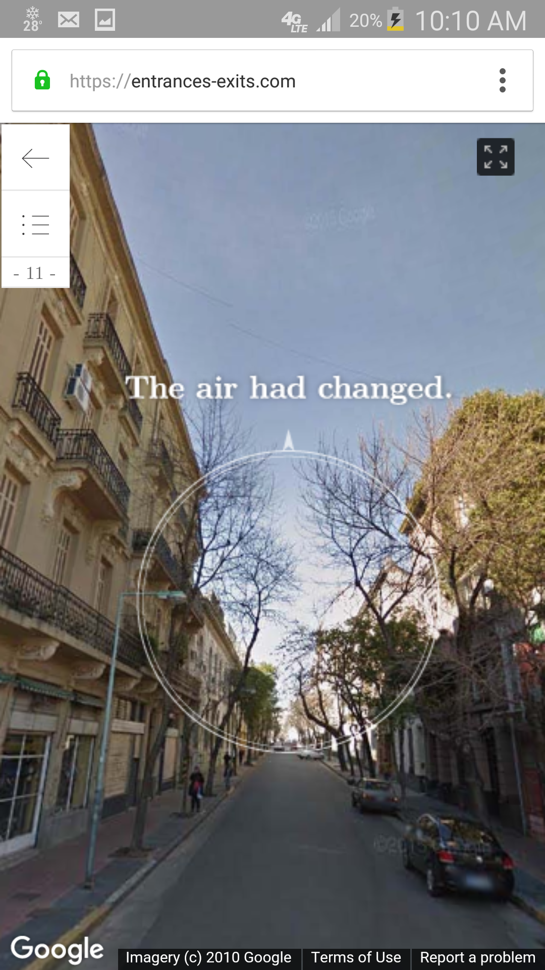 Google's description: "... a Borgesian love story told through Google Street View, in which the narrator discovers a mysterious key in an abandoned bookshop and gradually learns of its power to open and close doors around the world. The story is a beautiful dance between fictional narrative real locations that seamlessly spans the globe.
