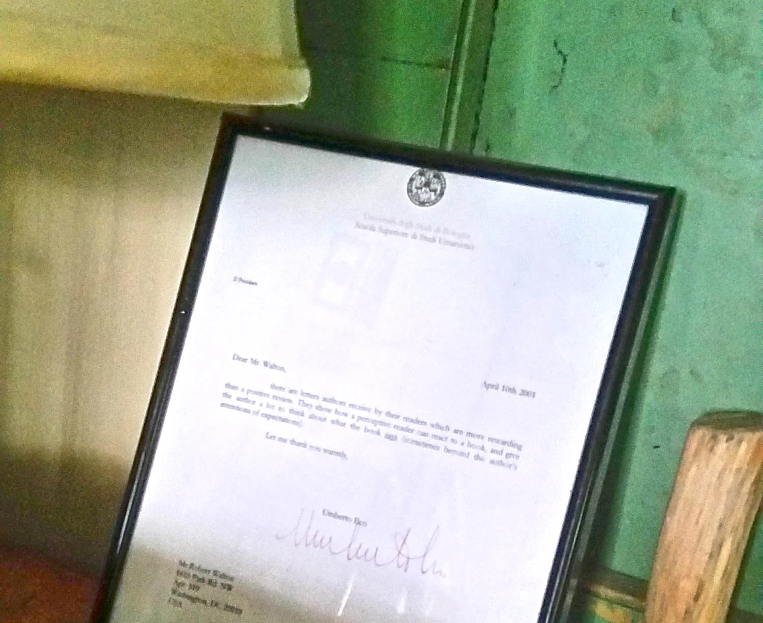 But Eco was a literary rockstar and an intellectual giant, and in April of 2001 I was 24 years old. His letter was brief, but it was also a wonderful recognition that what an artist makes, and how it is received, are two different things. That art can take on meaning beyond its creator's intention.