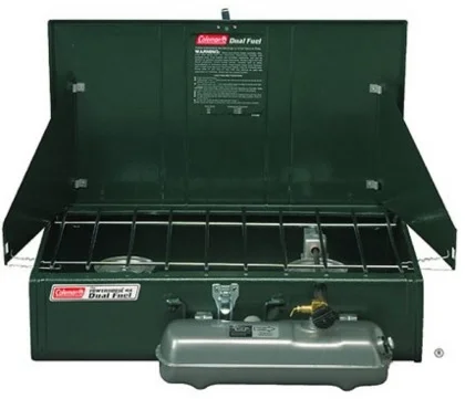 Among the advantages: You can use the cleaner-burning "white gas" fuel, which can be tricky to find on the road, or regular unleaded gasoline. The regular gas can leave a black soot on the outside of pots, but it's also a cheap fuel you can find anywhere. It's powerful enough to boil water on both burners. And on whole, it's a fairly inexpensive piece of equipment.